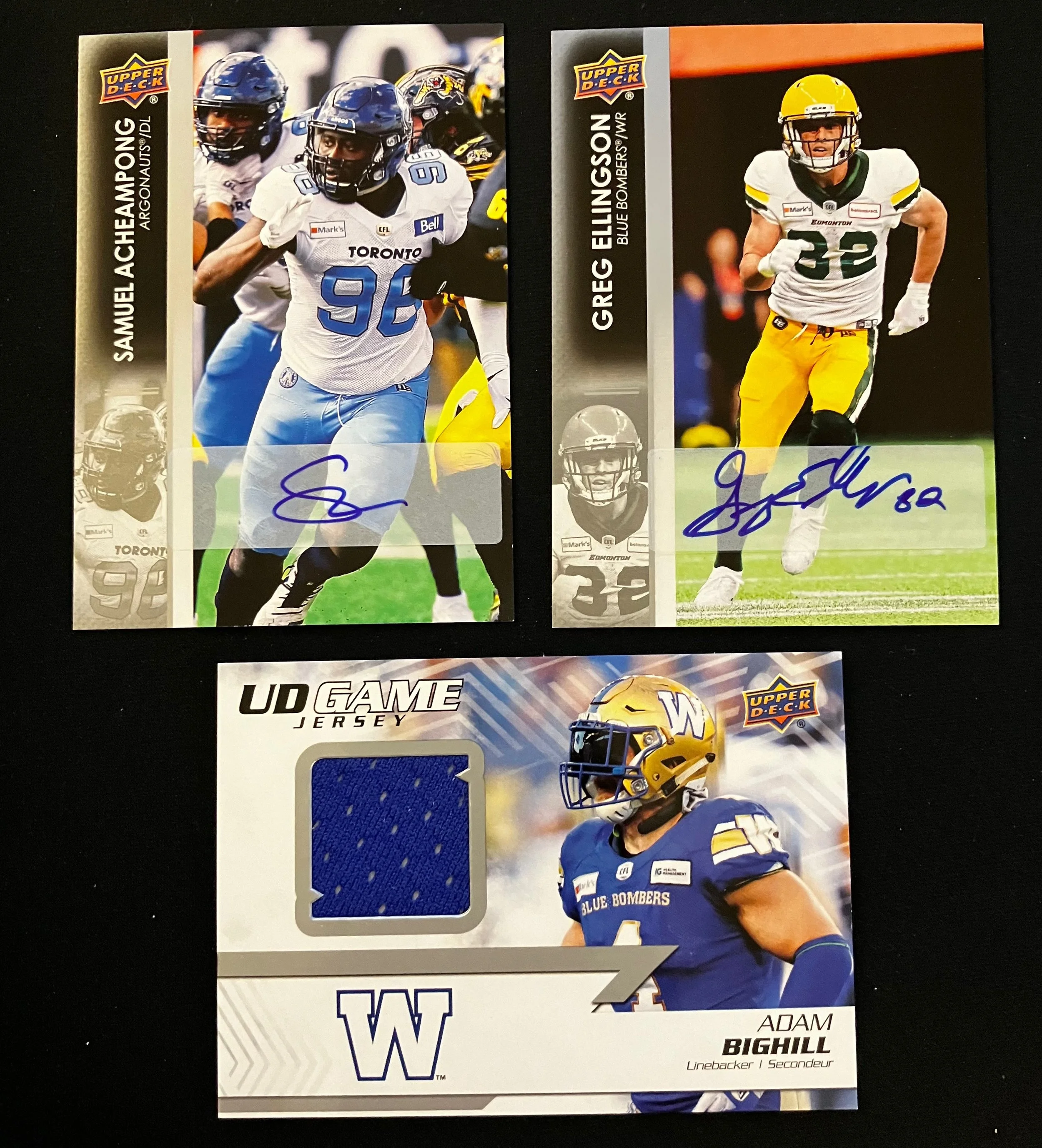 2022 Upper Deck CFL autograph and relic cards.