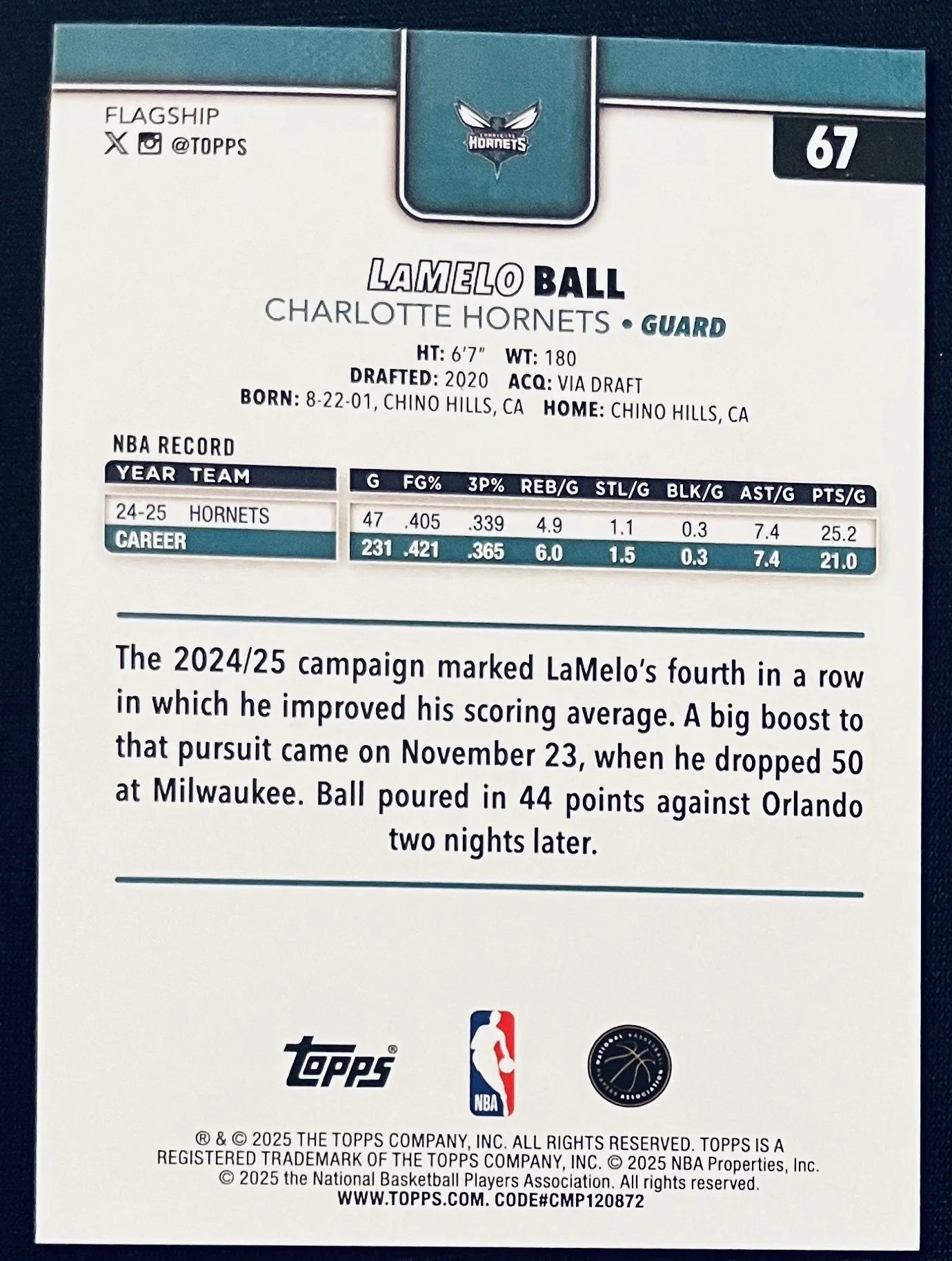 In the 2025-26 Topps NBA card set, they showed they are willing to have some fun and made Lamelo card number……. 67! I appreciate that level of detail in set structure and design. You can pick up the base card or one of the more limited parallels on eBay via this link.